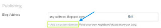 On the Setting page you will find the Publishing options where your Blog Address appears. Below that you will find "+ Add a custom domain" . Click it!